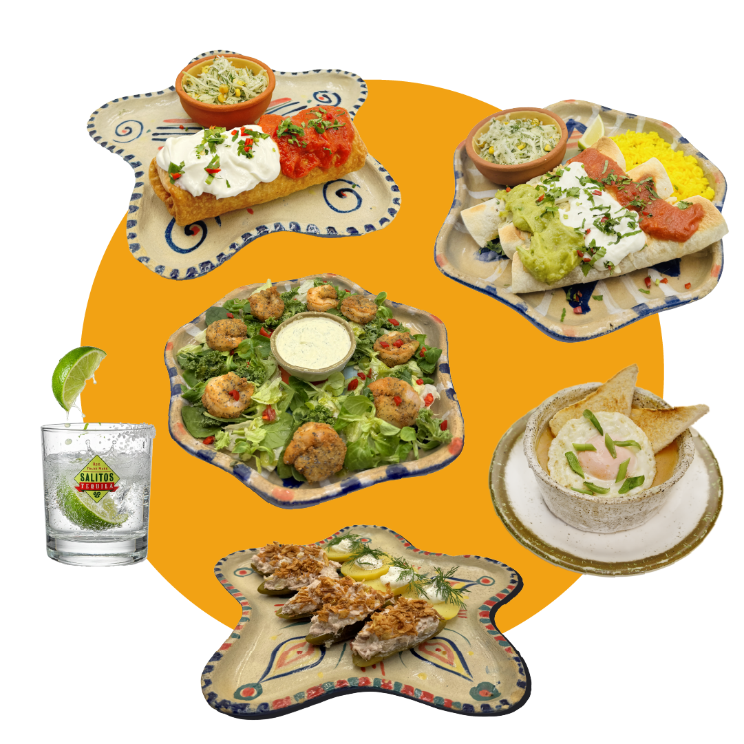 Two corn tortillas with a filling of your choice, baked with cheese, frijoles beans and marinated red onion. Served with Ranchera and Mango-Chili sauces.